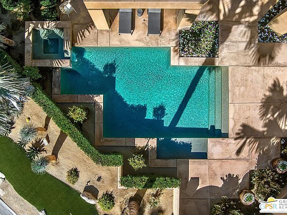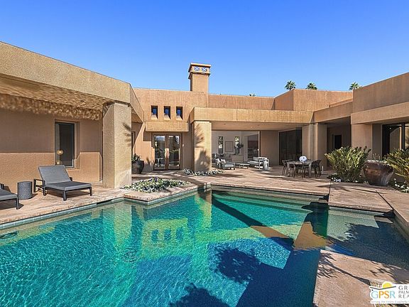Tucked behind Sunnylands in a calm section of Rancho Mirage, this contemporary residence is located within Artisan, a gated community recognized for its modern architecture and peaceful desert setting. A private entry courtyard sets the tone for the home, arranged with a pool, outdoor fireplace, BBQ and generous seating areas that create a welcoming and secluded environment before you even step inside. The layout unfolds across one thoughtfully arranged level, defined by tall ceilings and generously sized spaces. A central great room anchors the plan beside the large chef's kitchen and dining areas. Throughout the home, broad expanses of glass draw light deep into the interior. Movement through the home feels smooth and straightforward, with a natural progression between public and private areas. The primary suite occupies its own corner of the home and features a large picture window and seating area that frame classic desert mountain views. An expansive bath and a generous closet complete the serene suite. With approximately 4,340 square feet on a nearly half-acre lot, 23 Ambassador blends scale, comfort and a strong architectural presence in a desirable Rancho Mirage setting.