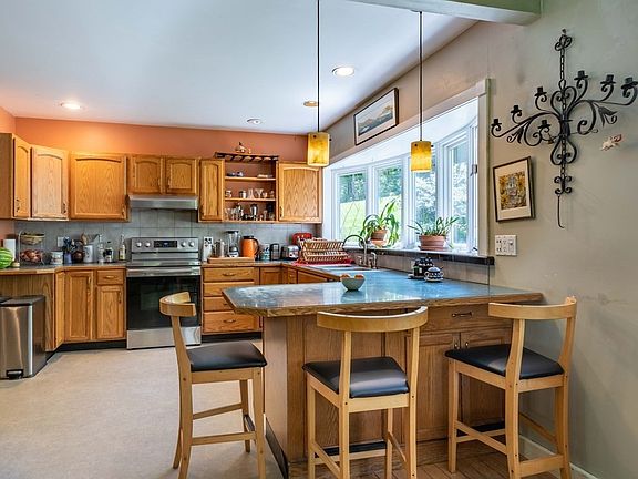 Make yourself at home in Pelham Center! This versatile home offers a flexible floor plan with plenty of charm. The first floor hosts a large kitchen, open to a generous sitting area that includes a built-in window seat overlooking the beautiful gardens. A formal dining room, living room, and attractively tiled full bath complete the first floor. The main bedroom is spacious and light filled with newer bamboo flooring, and across the hall is another large, bright bedroom overlooking the gardens. A tastefully updated full bath separates the last two bedrooms on the front half of the second floor. Outside, you can stroll through a gardener's dream. Numerous established garden beds, water scapes, pergolas, and an orchid house make for a yard fit to explore. Take in the various perennials while enjoying a cup of coffee from one of several vistas. All this, and only minutes from Amherst Center, UMASS, and Amethyst Brook!