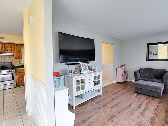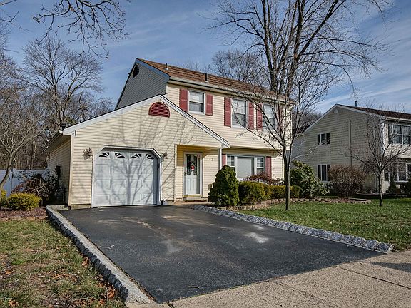 Welcome home to this well maintained 3 bedroom, 1.5 bath home that sits on a very private OVERSIZED lot on a quiet street in a very desirable section of Hazlet. This home features a large Living room, large kitchen with a breakfast bar and ceramic floor, corian countertops, ½ bath, laundry room and attached garage. Open the sliding door and step out from the kitchen onto a large beautiful deck perfect for entertaining overlooking this beautiful fenced in serene setting that backs up to green acres. Bonus shed for storage. Second level features a spacious master bedroom, full bath and linen closet, two additional bedrooms and pull down attic stairs.