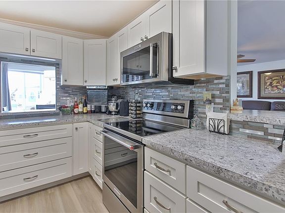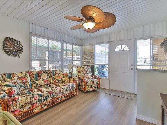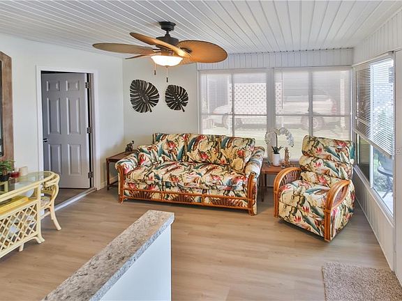 MAJOR PRICE REDUCTION! Rarely available, this delightful LAND DEEDED home with a share valued at $50,000 is located in Plantation Village Co-Op, one of the most sought after over 55 communities in Manatee county. Included in the HOA is lawn maintenance, sewer, water, trash, and cable making this a very affordable and move-in ready home. Pride of ownership is evident in every room with beautiful updated finishes. The kitchen boasts new stainless steel Kitchen Aid appliances, luxury vinyl flooring, a farmer's kitchen sink, and solid wood cabinets. The large living room has a built-in electric fireplace for those occasional chilly Florida evenings. The bathrooms are beautifully updated with new tile and cabinetry. And be sure to check out the sound proof home theater âman cave.â This homeowner has the room set up as a musical room but this bonus room could easily be transformed for any hobby. Best of all, enjoy sitting on your back porch overlooking the pond after a day of activities. Lots of nice touches that are too numerous to mention; you really must see the home to appreciate all the upgrades. Plantation Villageâs gated and well-maintained community offers pickleball, bocce ball, a community pool, exercise room, a fishing pond, and a clubhouse for social events. Everything you need is here or minutes away including shopping, restaurants, world-class beaches, and easy access to I-75.