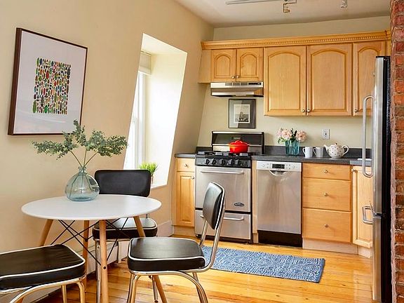 Just outside Davis Square, this one-bedroom unit is on the top floor of a charming three-unit Second Empire style building. With great light and high ceilings, it has warm pine floors and a simple layout. A central space, perfect for a home office, connects the entry stairs to the bathroom, bedroom, and living room, which in turn is open to an efficient L-shaped kitchen. A brick chimney stack provides a nicely textured end point to the kitchen. The bedroom is a cozy retreat accented by window recesses that reflect the building's mansard roof, and just outside is a private-use deck for morning coffees and evening cocktails. The unit has a large assigned storage area in the basement, where the laundry is located, and an assigned off-street parking space in the driveway. On a lovely short block, with a high walk score of 74 and easy access to shops, restaurants, and the Red Line T, 23 Appleton is a perfect urban perch. ; ; ; Virtual tour available upon request. Owner pays for water and sewer. Tenants pays for electricity and gas (heat, hot water, stove). Security deposit (equal to one month's rent), and broker fee (equal to one month's rent) due prior to move-in.