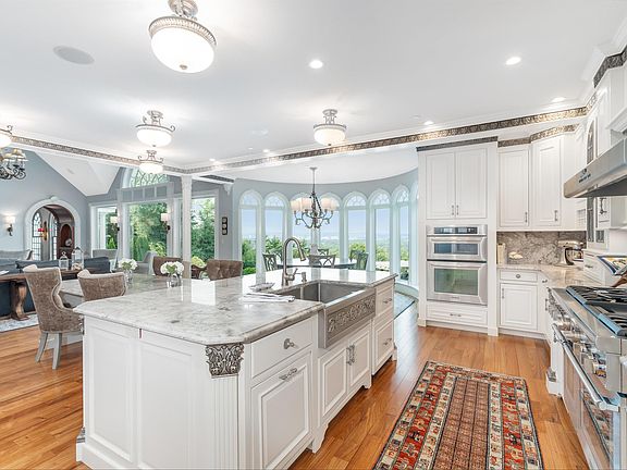 AN ARCHITECTURAL MASTERPIECE WITH VIEWS BEYOND COMPARE-HILLTOP PARADISE! Inspired by its panorama, a home that embodies beauty and comfort in every room. An inspired, intricate stucco exterior with stately columns and arched windows welcomes you. Step into a grand foyer and be transported...beyond the inlaid marble floor and graceful curved staircase with hand-carved newel posts, the view will take your breath away. Imagine music emanating from the delightful salon with curved wall and niches. At the heart of the home, an expansive living room with exquisite butler’s pantry and marble fireplace, is open to an island kitchen featuring the finest cabinetry, quartzite and built-in coffee station. Meals prepared on commercial grade appliances can be enjoyed in the breakfast area bay or more formally in the exquisite dining room...a host’s dream! The billiards room, a labor of love, features a plaster ceiling crafted from original molds and a bar designed after a world-renowned steakhouse. Tucked away, find solitude in a richly paneled library with private lav. A walk out lower level offers great flexibility...large sitting room, lovely bedroom, summer kitchen, laundry and perfect spot for a home-theater. Swim in the oversized pool or warm up by the fireplace surrounded by stone walls and gardens. Upstairs, three bedroom suites each have unique, custom baths. Retire to a sumptuous primary suite with world-class dressing area and opulent marble bath. AWAKEN IN A ROOM WITH A VIEW!