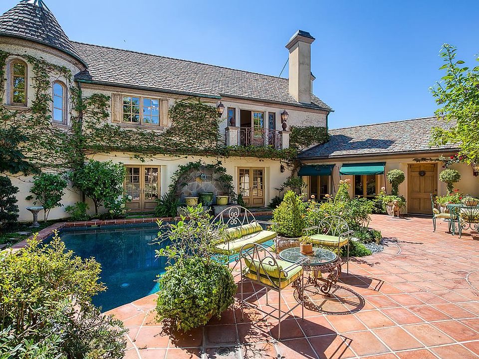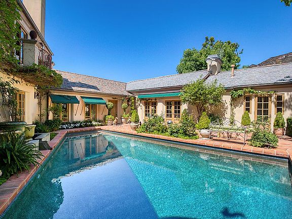 Tranquilly situated at the end of a private cul-de-sac, this exclusive Big Canyon Estate embodies the true essence of a classical French Chateau. Panoramic sunset, gulf course, and city lights views from the flawlessly landscaped backyard allow for illustrious entertaining amidst the picturesque french garden. Enter through the 19th century front gate leading you to the large courtyard with private salt water pool. This recently renovated 5 bedroom plus office estate includes a mother-in-law suite with direct private access on the first floor, an in-home movie theater, first and second floor master bedrooms, family and living rooms with French style hand-carved cherry wood built-ins and fireplaces, all with new hickory wood floors throughout. Inspired by kitchens of the French countryside, this gourmet kitchen is equipped with new Ceasarstone countertops, custom cabinetry, and top-of-the-line appliances. The formal dining and living rooms are framed by centuries aged windows centered on a 200 year old fireplace mantle all brought in from Europe. The second level includes a master bedroom and bath with an extensive walk-in closet, along with a grand office complemented by richly appointed custom cherry wood built-ins and hand-laid parquet wood flooring. Walking distance to Fashion Island, shops, restaurants, and within minutes to the beach and bay.