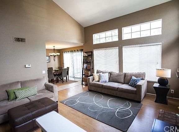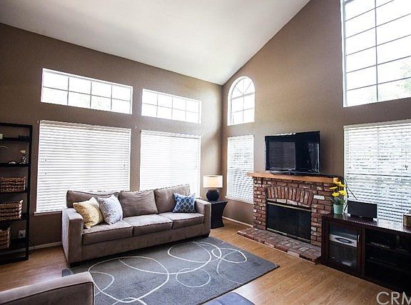 Fabulous 3 bedroom and 2.5 bathroom home with an open layout and vaulted ceilings. This spacious home offers plenty of natural sunlight and has views of the beautiful mountains serving as the backdrop. Upgrades include new paint and premium plush carpet, and the large kitchen and power bath have granite countertops. Ceramic flooring is featured throughout the kitchen and bathrooms, and a cozy fireplace occupies the pergo flooring in the living room area. The third bedroom has been converted into an office with built in book cases and desk. The private patio is great for entertaining family and friends. This home is conveniently within walking distance to Lake Santa Margarita, O'Neill Regional Park, accredited schools, parks, restaurants and shopping. Nearby Guest Parking.