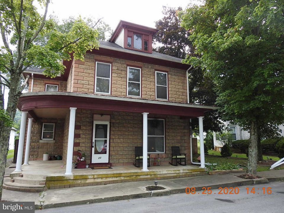 This well maintained, solid home in the Borough of New Bloomfield, offers a stunning block structure with a bowed front porch leading to a private alleyway and a well manicured, fenced in back yard with an original block wall with all of its original character. This home gives you ample off street parking with six parking spaces including a two car garage and carport with plenty of storage, 2 more outbuildings, one 10x14 block building with a new roof that sits close to the house and another storage shed that is located in the parking area. This oasis in town will give you plenty of outdoor living space with a large fire pit within the brick patio and all the beauty of the large back yard. The original well maintained character flows inside with hard wood floors throughout and large floor to ceiling windows. With convenience of first floor laundry, a spacious kitchen with newer appliances, the floor plan flows right into the large dining room. You can not go wrong with two sources of heat and hot water; an oil furnace offers both hot water and heat with a shut off for summer weather to run an electric hot water heater. The pellet stove on the first floor offers a secondary source of comfort. There are three spacious bedrooms and a forth bedroom/office. The original stairway shows off the crafted wood work. Come home to all the well kept and well maintained beauty this home has to offer.