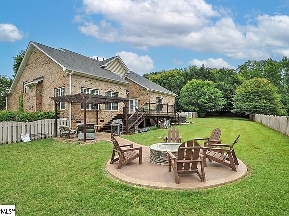Come find your new home in this gated Executive neighborhood of Riverwood Farms which offers an impressive array of features and amenities. With 4 bedrooms, 3.5 baths, glowing new refinished hardwood floors & all new carpet, this spacious home is perfect for a growing family or those who value extra space. The open floor plan and master bedroom on the main level provide both comfort and convenience. The home office with custom barn door adds a touch of style and privacy. The 2-story stack stone fireplace creates a striking focal point in the living area. The bonus room offers flexibility for various needs, and the large deck and patio with arbor and firepit are perfect for outdoor entertaining and relaxation. The fenced back yard that backs to trees provides privacy and a sense of tranquility. Situated on a cul-de-sac lot, this home offers peace and quiet. Additionally, the complete amenities package and award-winning schools make this neighborhood an excellent choice. It's convenient location provides easy access to Greenville's Eastside, Downtown Greer and the GSP Airport, making commuting and exploring the area hassle-free. Overall, this home offers a wonderful combination of space, outdoor play and convenience in location. Sellers offer whole house interior painting with an acceptable offer! Make an appointment to see this home soon.