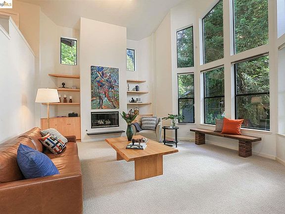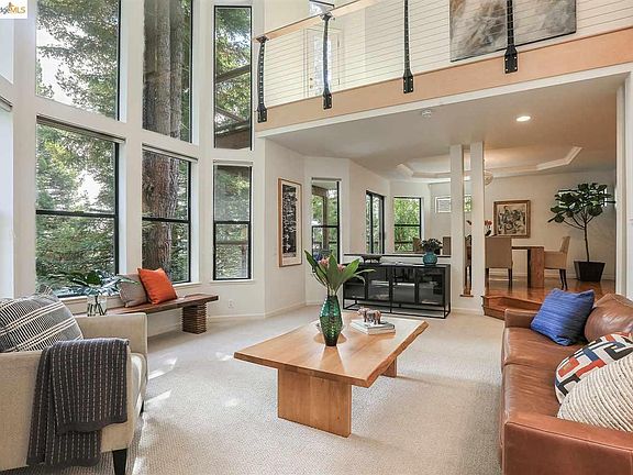 Oakland Hills retreat! Beautiful contemporary with soaring ceilings and ideal split level floor plan. Entertainer's kitchen with 6-burner Blue Star range, Miele fridge, and Sub-Zero freezer. Gorgeous private decks among the redwoods with peek-a-boo views to downtown Oakland and the bay. Grand master suite with jetted tub and cedar-lined walk-in closet. Light and shadow play from the upper mezzanine, which offers generous space for art collections. Nestled equal distances to Rockridge and Elmwood, zip quickly to BART by scooter or bike for weekday commute, and enjoy the peace of this sanctuary on lazy weekends.