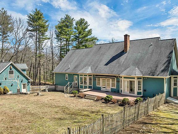 Price Reduction!!! A great value for Windham! Escape to Southern New Hampshire! Set on a wooded knoll, in sought after Bear Hill neighborhood, with a long drive leading to a 3.33 acre private retreat. Beautifully refinished Southern Heart Pine Floors! Inviting front porch offers plenty of room to enjoy the wooded views. Entrance hall features soaring vaulted ceilings opening to the balcony above. Right off the foyer is a place for a formal dining room, a spacious living room and powder room. The great-room is a gorgeous with cathedral ceilings, masonry fireplace and atrium doors leading to the deck and fenced yard. Charming country kitchen with plenty of cabinet and counter space, a big center island, cathedral ceilings, walk-in pantry and bay-front breakfast area. Big laundry room with cabinets and work-space. This home allows one floor living with a luxurious first floor Primary bedroom suite featuring cathedral ceilings, bay-front patio doors, and a full wall of custom bookshelves and cabinetry. Private spa bath and walk-in closet off master. The second floor has a full bath, additional bedrooms and a bonus room over the two car attached garage. Bonus room has separate staircase. Beautifully private fenced yard abuts the Foster-Clyde Farm Open Space areas. Plus there is a wonderful two car detached garage with future room above with lift. All kinds of unique features and amenities. This is the one you've been searching for in Windham. Welcome Home!