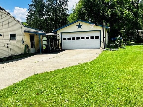 Quaint Ranch in Rural Neighborhood Setting with Detached 2 Car Garage and Amazing Yard Space! Large Eat in Kitchen leads to Front Living Room or First Floor Laundry. Forced Air Furnace Just Serviced and Wood Stove to Help Keep Utility Costs Down. Plenty of Space in the 2 Car Detached Garage & Additional Storage Shed!