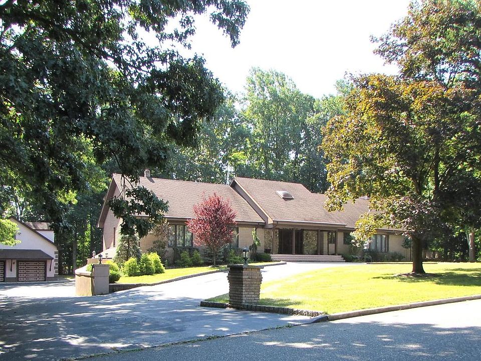 Waterfront Estate located on Beautiful Park like Property describes this Custom Built 5 Bedroom, 4 Full bath home. 2 Story Entrance, Sweeping Staircase, European Millwork, Arched Doorways, Great Room with Vaulted Ceiling, Field Stone Fireplace and Hardwood Floors. 9ft ceilings , Newer Custom Detached garage with Loft compliments the existing attached oversized 2 Car Garages.4 Zone HWBB heat, 3 Zone Central air, Full Walk out Basement with High Ceilings, Fireplace and Plumbed for bathrm adding to this incredible living space. This 4 sided Brick home sits on Level property with a Circular Driveway, Lighted Stanchions and Amazing Water Views with Private Access to the Swimming River Reservoir. Just 60 miles to Manhattan.