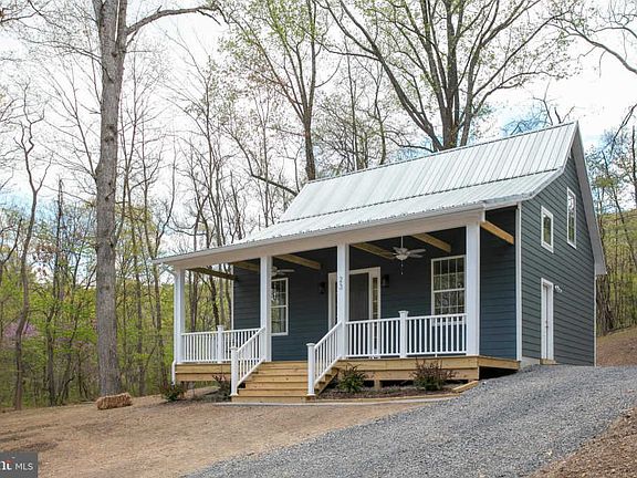 Custom Mountain Cabin built with quality materials. Hardiplank siding and metal roofing just to name a few. Walk to Public access of Back Creek for tubing and Kayaking. Lot is unrestricted. Full bath on each floor. Main level is open. Kitchen has butcher block counters. Upper level has 2 bedroom and a full bath. Laundry on the main level. Huge covered front porch and rear patio. Filtered mountain views.