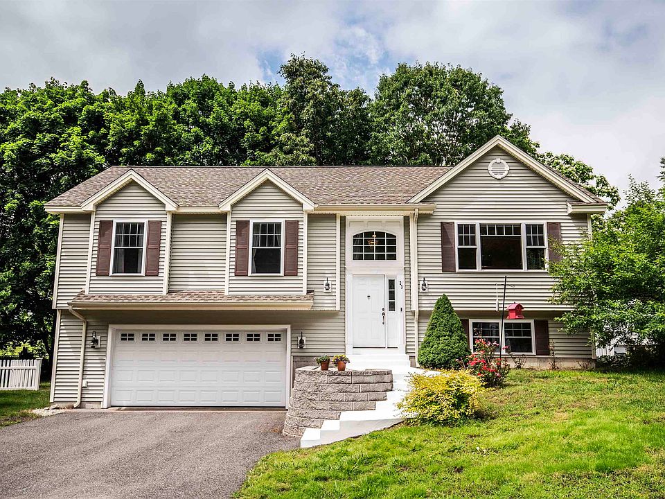 ***OFFERS DUE SUNDAY 6/25/23 7pm*** Welcome to this beautiful split-level home located in a highly desirable neighborhood in Salem, NH! This remarkable home boasts three bedrooms, three bathrooms, and over 1,600 sq.ft. of living space. With its abundance of natural light and vaulted ceilings in the kitchen/living room, the house radiates a bright and sunny ambiance. The open kitchen with adjacent dining area creates a perfect setting for enjoying meals. The kitchen itself showcases stainless steel appliances, granite countertops, and beautiful white cabinetry. There is a sliding glass door leading to the deck that overlooks the backyard. The main level bedrooms are generously sized, featuring ample closet space, while the primary bedroom enjoys the added luxury of an ensuite bathroom. Moving to the lower level, you'll find a finished bonus room that houses a separate laundry area, there is a convenient half bath that is already plumbed for a shower/tub. The double garage opens up to a sizable backyard, that is fully fenced and has irrigation. This area provides a fantastic setting for hosting summer activities and gatherings. The home is only a short ride to the Massachusetts border with access to Route 93 or Route 495. Don't let this incredible opportunity pass you by - schedule your viewing today and experience all the charm and comfort this home has to offer.