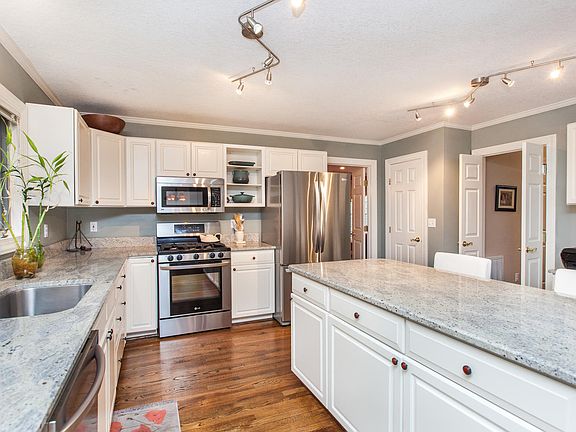 4 bedrooms and 2.5 baths. Well maintained home on culdesac in Biltmore Park. Miles of walking trails, community pool, club house, park areas, play ground, tennis and basket ball courts. Close to shopping, restaurants, fitness facilities, movie theaters, and more. Mature landscaping and privacy on this .75 acre lot. 2 story on full 1300 unfinished basement with space to grow as well as plumbed for 3rd bathroom. Bright and open kitchen with island and SS appliances that convey. Natural gas home with hot water heater, heating, gas logs and cooking. Family room open to kitchen and eat in area. Formal dining and living room. Fabulous upgrades in 2011/2012 including hardwood flooring, granite in kitchen and bathrooms, new sunroom, flagstone walkway and privacy fencing. Master bathroom updated with walk in doorless shower and new vanities.