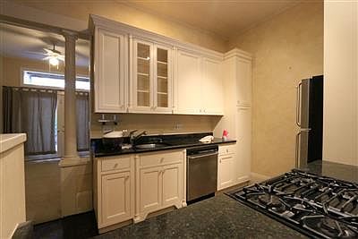 1st floor apartment. All hardwood floors. Heat and hot water are included in the rent. Enormous living room with dark hardwood and lots of custom built-in shelves. Beautiful galley open concept kitchen with custom cabs, granite, stainless appliances including dishwasher. Open area in back could be a bedroom or a dining room. Apartment has very nice built-in Murphy bed. Very cool shared roof deck. Nice private back porch and shared yard!! Big walk in closet / storage area. Street parking only. Pets negotiable on a case by case basis. Ref 130822