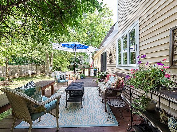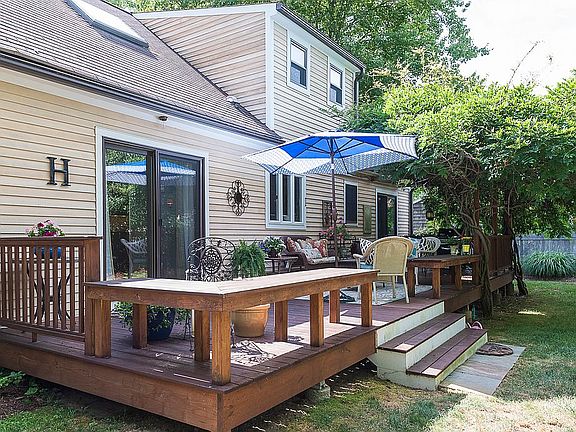 This charming water-area home has deeded beach rights and is in wonderful condition. The formal living room with gas fireplace opens into the dining room for easy flow and entertaining. The roomy kitchen has quality stainless steel appliances, lots of cabinets and counter space, and a gas stove. A separate first floor family room offers flexible options. There is also a first floor bedroom with twin closets and an en-suite full bath which the current owners use as their master bedroom although there is a larger master upstairs along with an additional bedroom and full bath. And highly coveted in this area, there is an attached one-car garage. The property offers a delightful back yard with a large deck and charming gardens providing a lovely private retreat to compliment the deeded sandy beach at the end of the street.