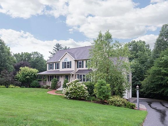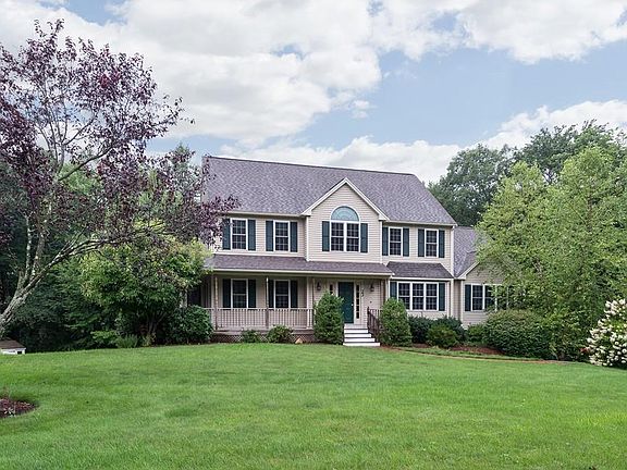 Pack your bags! Stunning professionally landscaped 4 bedroom, 2.5 bath home in sought after "Blueberry Estates" with a large farmer's porch. The first floor features an oversized family room with a fireplace, sun-filled dining room, formal living room which could be used as a playroom or a second office, large kitchen with granite counters and a slider to the deck. All with hardwood floors. There is also a large 1/2 bath with laundry and a spacious office with it's own entrance. The carpeted second floor features 4 sunny bedrooms including a large master suite with a oversized walk-in closet and master bath with a tiled jetted tub and a separate shower. The basement is ready to be finished with a sliding glass door out to the beautiful 2 acre yard. Plenty of room in this oversized 2 car garage.Mass Save just did a full audit and upgrades to this home. Too many upgrades to list in this well maintained home. Please see attached upgrade list. It is a must see!