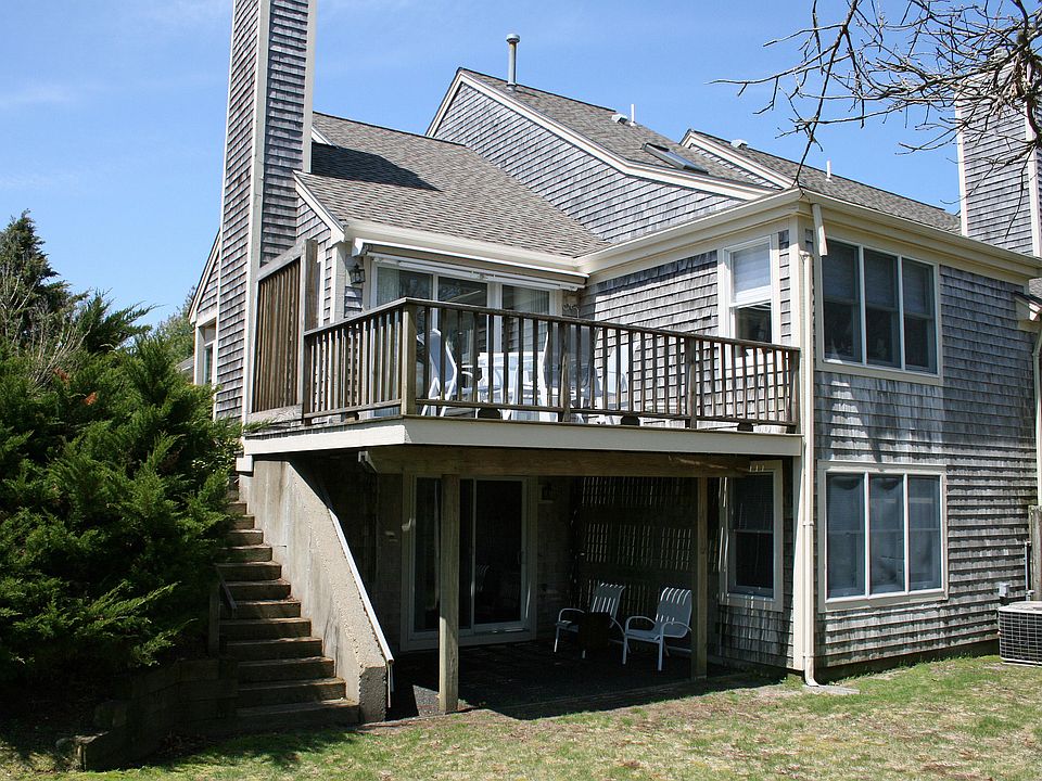 Light & Bright D Style Townhome at Kings Way, one of the Cape Cod's premier communities. First floor offers cathedral ceilings in the family room, living room, and master bedroom with in suite bath and walk-in closet. Direct view of the 4th fairway from master bedroom and living room sliders leading to large deck. Separate formal dining room with bay window overlooking attractive courtyard; Large breakfast/family room off kitchen with hardwood floors and slider to side courtyard. 2nd floor features guest suite with full bath and good sized loft areal with open den/office area. Walkout Lower level walkout is nicely finished with two large family rooms, full bath and cedar closet adding over 700 sf of space. Convenient direct entry 2 car garage.