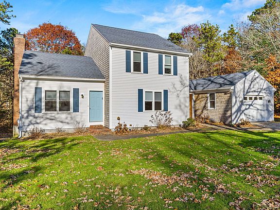 Welcome home to desirable Southfield Estates. This lovely Colonial sits on almost a half-acre, surrounded by beautiful, mature landscaping allowing for a wonderful sense of privacy. With hardwood flooring throughout, the heart of this home is the newly renovated kitchen; beautiful Quartzite countertops, soft-close cabinetry and pendant & recessed lighting all centered around an incredible, oversized island with seating for 6. The kitchen flows into the living room with vaulted ceilings, recessed lighting, a wood burning fireplace and sliders to the back deck. The main floor also offers a primary ensuite, with two closets and space-saving pocket doors leading into the bathroom. A mud room houses the washer/dryer, an expansive coat closet and access to the one car garage. Upstairs where the landing overlooks the living room, you'll find two spacious bedrooms, a shared full bath and large closets for storage at either end of the hall. An unfinished walk out basement offers plenty of room for potential expansion. An additional perk: this tranquil neighborhood is less than a 5 minute drive to Wakeby Pond for fresh water swimming and fishing!
