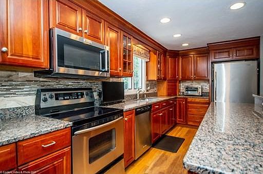 PLEASE BE AWARE, Highest and Best offers due but Sunday 5 pm. Welcome to Mayflower Woods Rochester. This majestic colonial will WOW you from the minute you arrive. Featuring hardwood floors through out most of the home, and an eat in kitchen with granite counter tops, and a 2 level island as well as stainless steel appliances. Off of the kitchen you will find a living room with a wood burning fireplace, as well as a dining room. Upstairs there are 3 large bedrooms (house was originally 4 bedrooms, current owners removed wall). There is also a walk up attic. Above the 2 car garage is a huge family room. The basement is partial finished with a home office, a work out room, and another living room. The yard has irrigation, a storage shed, an inground pool, off the deck is another out building with a hot tub and plenty of room for entertaining. Not to mention the fire pit area. Simply an amazing property .