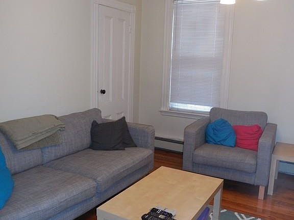 Property Features: Near JP Center Private basement storage Private Laundry Hardwood floors Renovated 2.5 bedroom apartment located on the third floor of a 3 family style house. Large, newer eat in kitchen features gas stove, dishwasher, disposal, full size fridge and built in microwave. Large bathroom is updated, as well. Rear facing bedroom (~12' x 11') with closet, and front facing bedroom (~12' x 14') with a bonus room (den or walk in closet) off of it. Tenant pays utilities (gas, electric and cable/internet). Private basement storage, designated private laundry machines in the basement, rear private porch, and shared yard. Street parking only with no permit needed.