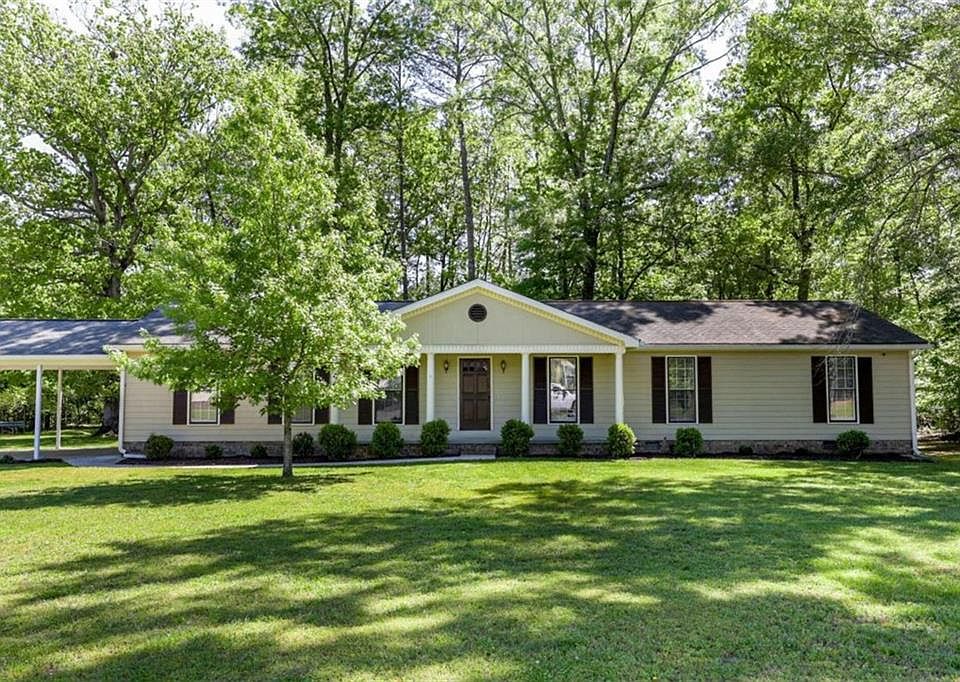 This inviting one-level home in Brookwood Estates offers three bedrooms and two and a half bathrooms, nestled on a serene corner lot at the back of the neighborhood. The backyard is a tranquil haven with seasonal foliage adding to its charm. Step inside to find a comfortable living room, leading into the kitchen area which includes a small room, perfect for a small eating area or study. The kitchen extends into a sunroom that opens onto a side deck, creating a indoor-outdoor flow. A bonus room off the kitchen and carport, provides flexibility for various needs. The living quarters consist of two spacious bedrooms sharing a hall bath, along with a primary bedroom featuring its own ensuite bathroom. For those with hobbies or a need for workspace, the property boasts a substantial 1200 sq ft workshop, complete with 560 sq ft of insulated and heated space. Equipped with a half bath, automatic garage door, sturdy metal shelving, workbenches, and additional attic space, this workshop offers endless possibilities for creative pursuits or storage solutions. Home includes a Swann Home Security Camera System, 8 Channel, 4K Ultra HD DVR. This property is being sold AS IS.