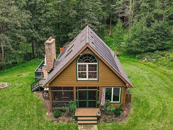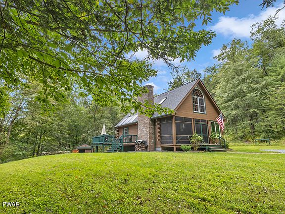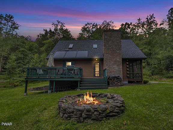 THIS RETREAT HAS IT ALL! TERRIFIC TRUE LOG HOME ON 25 ACRES WITH PRIVATE POND LESS THAN 1 MILE FROM THE DELAWARE RIVER! Tucked away on 25 acres, this amazing true log home offers the perfect escape into country living. With three bedrooms and two full bathrooms, this immaculately kept log cabin boasts a warm & inviting atmosphere, highlighted by cathedral ceilings and a stunning wood burning stone fireplace. The open concept living space is filled with charm, from the hardwood floors to the granite countertops in the beautiful kitchen. The home is thoughtfully designed with comfort and efficiency in mind. Recently installed solar panels keep electric bills low, while a new heat pump/ac system ensures comfort year-round. The property also features a large screened in porch where you can relax and take in the fresh country air. Upstairs, a catwalk leads to an office area and the spacious primary bedroom suite, complete with hardwood floors, a walk in shower, and ample closet space. The second floor also provides additional sleeping areas, making it a versatile space for guests. On the lower level, you'll find a partially finished basement with a wood burning fireplace, garage and plenty of room for storage. The detached shed offers even more space for wood, tools, and recreational vehicles, while the one-car garage keeps everything secure. For those who enjoy outdoor activities, the 25 acres of private land offer endless opportunities for hunting, hiking, and exploring. And when you're ready for more adventure, the wild and scenic Delaware River is just a short walk away, perfect for kayaking, fishing, and taking in the breathtaking surroundings. Whether you're looking for a full time residence or a weekend retreat, this incredible log cabin offers everything you need to move right in and start enjoying the beauty and tranquility of country life. Properties like this, with so many remarkable features, rarely come on the market-don't miss your chance to make it yours!