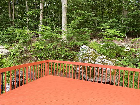 Peace and tranquility on wooded 2 acre property on quiet street. 4bdrm, 2.5 bth. 2600 sqft, fireplace, media room with 10' screen, updated central a/c, laundry room, new sliding glass doors to deck and more. Does not include finished walkout lower level and 2 car garage. Parking on premises included. Standard lease. 1st and last months rent, no security deposit. Renter pays all utilities, oil, landscaping, garbage and all repairs less than $500 each. Owner pays taxes, insurance and water only.