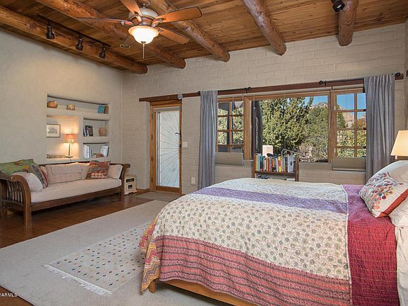 Go red and go green; red rock views from an 18'' thick adobe walled Territorial with solar panels on the roof (the March electric bill was $19.) 3236 sq ft of the best adobe craftsmanship. And does it have a swimming pool? Of course it does. And is it in a gated community? Yup. The longest lasting structures in the southwest are just like this. Wood and natural stone floors accent massive columns, while carved corbels solidify that authentic charm under sculptured and vega structured ceilings. Apart from an obvious benefit of defeating the hottest days, adobe is blissfully quiet. Let the benefits of a life in Sedona inspire you while the benefits of adobe shower you in peace. Green is intelligent, making an adobe home your home is smart.