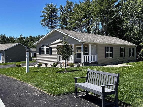 Maine's newest over 55 Manufactured Housing Community offers this amazing home ready for occupancy this summer. Upon entering this bright and airy two bed/two bath home, you'll find yourself drawn into this fantastic gourmet kitchen with an oversized island, perfect for entertaining. The kitchen features an abundance of white cabinets with soft close drawers, stainless steel appliances, chef's sink along with vinyl plank flooring carried throughout the kitchen, dining area and living room. A great primary suite offers large closet and bath with double vanities and step in shower. Additional features of the home include central air, front porch with attached side deck to be built with composite decking/vinyl rails, lantern with dusk to dawn bulb, professionally landscaped and irrigated, concrete front walkway with single granite step, gutters and downspouts. Some of pictures shown may be of similar model. Amenities include pickleball court ready for play and community center currently under construction. Community will mow lawns, offer spring and fall clean-up, clear driveways of snow, provide curbside trash pick-up.