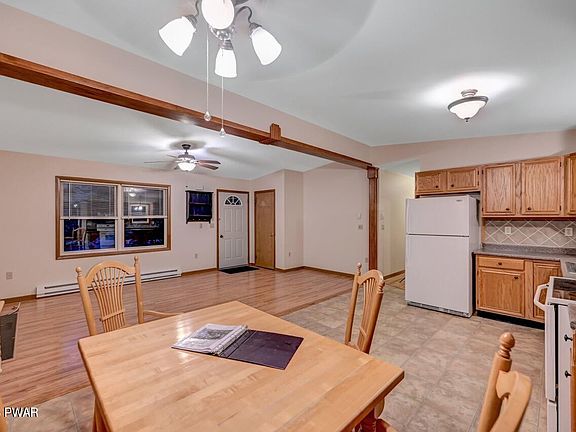 Wallenpaupack Lake Estates (WLE), an amenity filled community in The Northern Poconos with lake rights to Lake Wallenpaupack, a 5700 acre lake. This ranch home is located at the end of a cul-de-sac on a private wooded lot. One level living with laundry room on the main level too! Nice open floor plan with laminate, and hardwood flooring, fireplace, access to the rear deck. Large primary bedroom with walk-in-closet. Walkable high crawl space with outside entrance for storage. The amenities include lakes, beaches, 2 outdoor pools, an indoor pool with fitness center, an adult lodge, tennis courts, hiking trails, gaming courts, ballfields, camping, boat ramp access to Lake Wallenpaupack and more. Central Sewer and water included in dues., Beds Description: Primary1st, Baths: 1 Bath Level 1, Eating Area: Dining Area, Sewer: WS Comm Central, Beds Description: 2+Bed1st