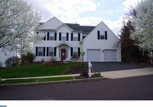 This absolutely beautiful two story colonial home located in Hilltown Township includes over 3,000 sq ft of living space with more amenities than most model homes! This former sample home consists of 4 generous sized bedrooms, 2.5 baths, and a 2 car garage. The spacious rear yard includes an oversized EP Henry patio with an automatic retractable awning. The absolutely stunning finished basement includes tile/Berber flooring and adds additional space to the listed interior square footage! The kitchen boasts 42" recessed oak cabinets, hardwood flooring, a tile backsplash and new appliances. Additional feature include; 9 ceilings, hardwood floors, a marble fireplace, crown molding and plenty of recessed lighting. The large master suite includes two sitting rooms, a dressing area, a large walk-in closet, chair molding and a soaking tub with a cathedral ceiling. Incredibly low taxes on this gorgeous home! The nicely landscaped grounds and the backyard views of open space grants this property a tranquil setting just minutes from all major roadways, restaurants and shopping.