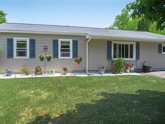 Well maintained ranch nestled in a quiet neighborhood, close to all amenities Canandaigua has to offer. This 3 bedroom open layout ranch has many updates including the stove, roof, hot water heater, new double hung vinyl windows through out and new master bedroom carpeting. Enjoy the back screened patio leading into the back yard lined with trees. A detached 2 car garage makes a perfect location for extra storage! Delayed negotiations to take place Wednesday at 6pm.