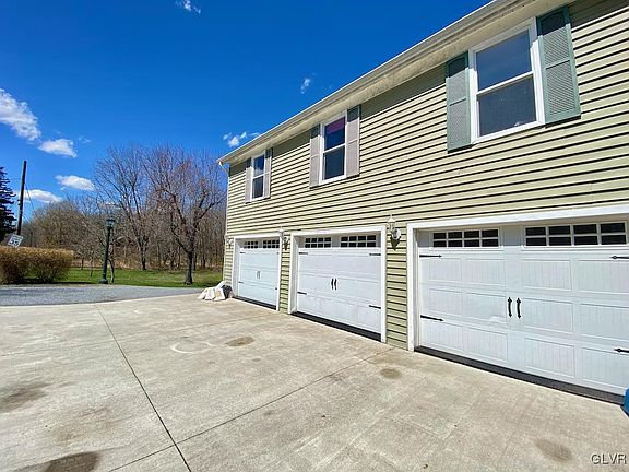 This updated home is a dream for that wood worker, hobbyist or car enthusiast with 9 garage bays! 3 car attached garage on the 1st floor, 3 car bays on the lower level and 3 car bay detached pole barn. Pole barn has a 10,000 pound rotary car lift, 1 ft poured concrete slab and 220 outlet for running equipment. The home has a spacious eat-in kitchen with center island, large pantry and all appliances. From the living room there are 2 sets of French pocket doors that lead into the kitchen, study and half bath. On the 2nd floor is the master suite with vaulted ceiling, walk-in closet and it's own private balcony. The master bath has a built-in linen, double vanity and glass enclosed shower. The next en-suite bedroom has built-in closets and it's own balcony. There are 2 more bedrooms, a full bathroom, laundry closet and another office. The first floor deck wraps around to the covered front porch and offers relaxing views of the backyard. Only minutes to I80 or Rte 33 and conveniences.