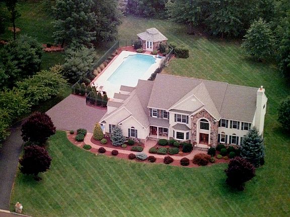 MAGNIFICENT PACESETTER COLONIAL IN CLINTON TOWNSHIP A gracious lifestyle is attainable in an estate-caliber Clinton Township Colonial located in the sought-after Pacesetter neighborhood. Situated on 1.37 acres of park-like grounds, this stone and stucco-accented home is a regal presence at the end of a paved drive marked by lighted stone pillars. The 3,800-square-foot floor plan offers four bedrooms, two full baths, two powder rooms, plus an attached three-car garage. Within the manicured property is a luxurious 1,000 square-foot resort-style gunite pool, a stone gazebo pool cabana, stamped concrete patio, tiered terraces and a covered and columned entertainment pavilion with paver stone floors and Brazillian redwood ceiling. Constructed by noted builder Tom Pflath in 1995, the home was extensively renovated in 2007 and shows true pride of ownership throughout.A nicely-flowing eleven-room floor plan is enhanced by Brazilian cherry wood and marble flooring, detailed moldings, Andersen Thermopane windows, high ceilings, skylights, arched room openings and French doors. There is additional living space on the walk-out lower level, which is finished with a recreation room, a granite wet bar and built-in desk area.This home's elegant introduction is a two-story foyer offering marble tile floors with inlays, a graceful curved staircase and dimensional applied moldings. Fluted pilasters and headers artfully frame the dining and living room doorways in the foyer. Anchoring the living room is a wood-burning fireplace clad in granite and wood; additional details include eyeball lighting, crown moldings and three-and-a-half inch wide Brazilian cherry wood floors. In the dining room, applied, chair rail, crown and dentil moldings, Brazilian cherry wood flooring, a bay window and a ceiling medallion are classic design elements. A soaring beamed cathedral ceiling lends additional openness to the great room, a bright space filled with natural light from a series of circle top windows, skylights, window walls and sliding glass doors opening to the covered pavilion. Especially noteworthy is the stunning gourmet kitchen featured in New Jersey Design magazine. Updated in 2007, this inviting room presents custom maple cabinets from Brook Cabinetry finished in a rich espresso glaze, an elongated center island, granite counter-tops, recessed lighting and marble tile flooring. Upscale appliances include a stainless steel Viking four-burner stove and griddle topped by a custom hood with wide corbels and a vine motif, stainless steel Jenn-Air refrigerator and a stainless steel microwave. Other inviting touches are bead board paneling, a chandelier, egg-and-dart molding accenting the cabinets, under-cabinet lighting, a sliding glass door to the covered pavilion and an adjacent breakfast area. Completing the main floor is a privately-situated study offering detailed trim and a bay window, a laundry room, mud room and two powder rooms.Upstairs, the tray ceiling master bedroom is entered by a set of double French doors and enhanced by classic millwork and dual walk-in closets providing built-in wardrobe organizers. A luxurious master bath updated in 2005 is appointed with electric radiant heated travertine flooring, a double sink cherry vanity capped in granite, jetted platform tub and a separate tumbled marble shower enclosed by a clear glass door. Three additional bedrooms share a stylish full bath in the hallway. An oversized bonus room offers maple hardwood flooring installed in 2010, a tray ceiling, three alcoves and recessed lighting.