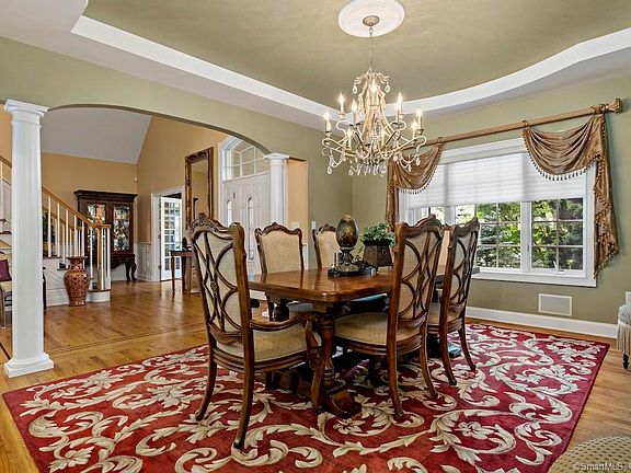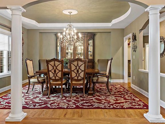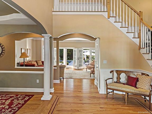 This tastefully designed 4,000-plus square foot home features an in-ground swimming pool framed by a large patio with an outdoor kitchen a veritable entertainment hub. First viewed from the foyer, the patio, which is surrounded by landscaped grounds lined by woods is accessed through French doors spaced throughout the main level, allowing ease of movement between indoor and outdoor spaces. The formal living room, which has a gas fireplace flanked by built-in cabinetry, opens to the patio. The dining room has a tray ceiling. The family room featuring a wood-burning fireplace with a tile surround opens to the gourmet kitchen with high-end appliances. The first floor primary suite has a spacious bedroom, sitting area, walk-in California closets and a luxurious bathroom with a Jacuzzi tub, duel sinks and a private water closet. The second level features an en-suite guest bedroom and two bedrooms with a shared bath. The finished basement offers a marvelous hangout or in-law or au-pair quarters with a great room, bar area and two bedrooms. An air-controlled car aficionados garage.