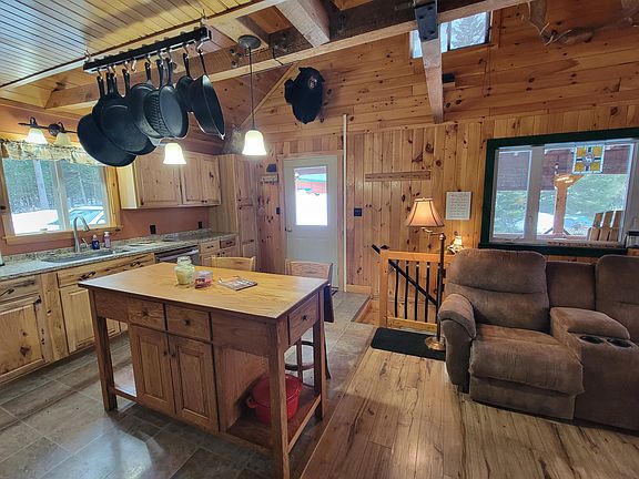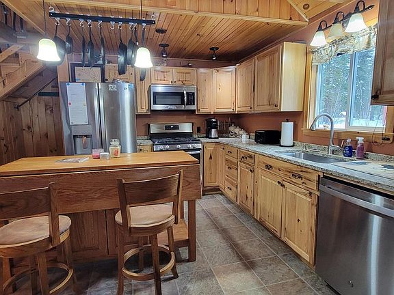 Serene retreat nestled along the North Branch of the Dead River. Step into a beautifully designed home with open floor plans, offering picturesque views of the river from nearly every room.