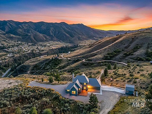 Welcome home to your very own private retreat on 5.42 acres which offers stunning 360° views, peace, and privacy—just 35-40 mins from downtown Boise. Enjoy the spacious living room with a cozy wood-burning fireplace, built-in wood storage, and abundant natural light throughout. The main-level primary suite features tall ceilings, private patio access w/ French doors, large walk-in closet with built-ins, Bluetooth speaker, and a walk-in shower. Each bedroom includes a walk-in closet and ceiling fan, and a Jack & Jill bathroom upstairs blends comfort and functionality. The kitchen offers a butler pantry, storage closet, breakfast bar, all electric utilities and direct patio access w/ French doors to the newly painted deck for easy indoor-outdoor living and entertaining. The upstairs loft adds versatility and extra space. The fully equipped laundry room includes a washer, dryer, sink, hanging rod, and storage for added convenience. This charming home also has a 14x14 shed with loft, fenced garden with a peach tree, metal roof, Blink security system, newer heat pump, added attic insulation, new exterior paint, newer flooring, and an oversized front porch to view the abundant wildlife and mountains!