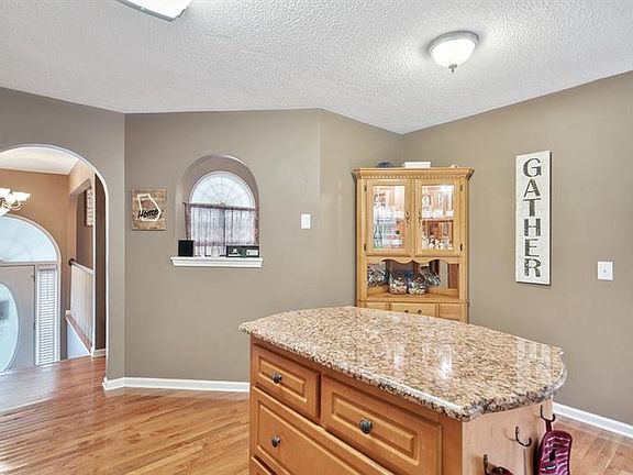 - Kitchen Features: Cabinets Stain, Eat-in Kitchen, Pantry, Stone Counters, Kitchen Island, Country Kitchen