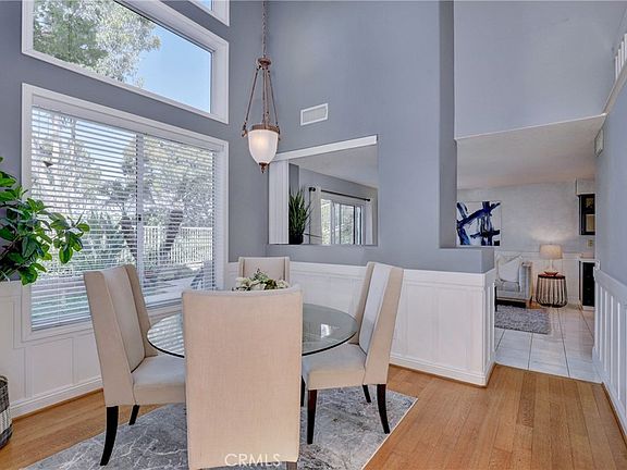 HIGHLY SOUGHT-AFTER FLOOR PLAN WITH BREATHTAKING PARK, CITY LIGHTS, AND SUNSET VIEWS! This home is a must-see! Step inside to soaring two-story ceilings, bathed in natural light from expansive windows. The focal point staircase beautifully defines the formal living spaces, creating a dramatic first impression. Rich wood floors flow seamlessly into the open-concept family room, which connects effortlessly to the entertainer’s kitchen. The spacious kitchen features designer-painted cabinetry, ample counter space, recessed lighting, and stainless-steel appliances, including a gas range, microwave hood, dishwasher, and refrigerator. There’s room for a breakfast table or a prep island, making this kitchen as functional as it is stylish. The family room, anchored by a custom fireplace with a stunning iridescent tile surround, invites relaxation. A large sliding door opens to the patio, blending indoor and outdoor living—perfect for hosting under the stars with panoramic views. The first floor offers convenience with a guest bedroom or office, a 3/4 bath, and a separate laundry room. Upstairs, a spacious loft provides a versatile living space—ideal for a home office, playroom, or even a 4th bedroom conversion. The primary suite, with its west-facing windows, boasts incredible sunset views. Vaulted ceilings enhance the airy feel, and a charming built-in nook offers the perfect spot for a dresser or entertainment center. The suite features dual closets (including a walk-in) and an ensuite bath with a dual-sink vanity, tile flooring, and a large soaking tub—a serene escape at the end of the day. The guest bedroom upstairs includes a walk-in closet and shares a Jack-and-Jill bath with the loft, completing the upper level. Outdoors, the possibilities are endless! The wrap-around yard offers room for entertaining, gardening, or even adding a pool. The angular, pie-shaped lot creates a unique space with tons of potential. A THREE CAR GARAGE, RE-PIPE, LEASED SOLAR and a short walk to the neighborhood park make this home even more appealing. Located just minutes from award-winning schools, shopping, dining, and commuter routes—plus Lake Mission Viejo membership—this opportunity won’t last! Come see it before it’s gone!