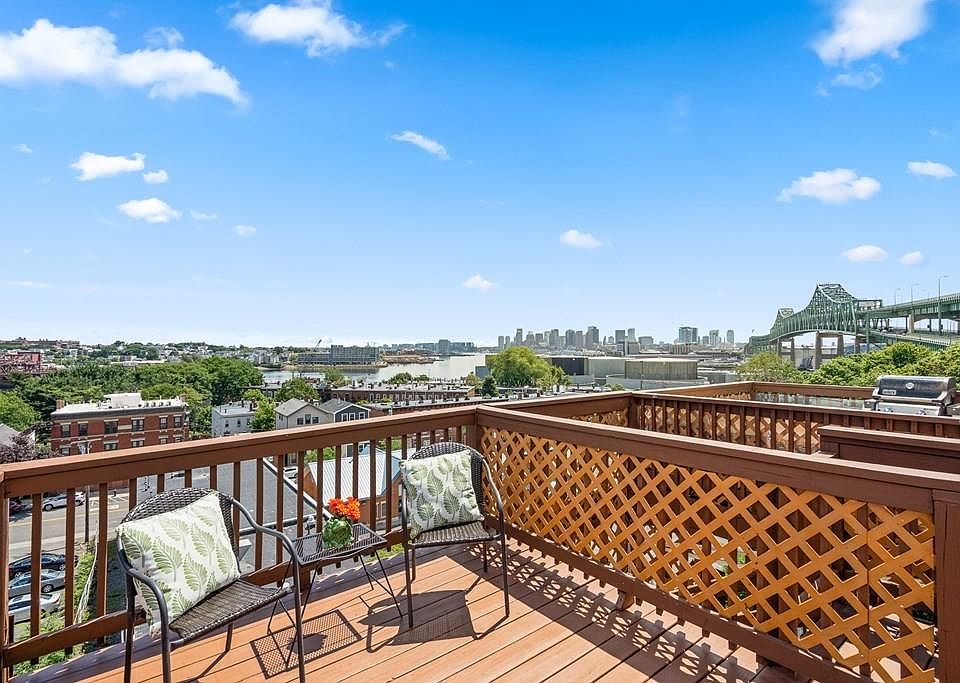 Simply stunning WATERFRONT neighborhood! An elegant, luxurious 2 bedroom, 1 bath condo with unparalleled Boston Harbor & skyline city view from a private deck in thriving Chelsea! Located a short distance from The T, shopping, Boston & waterfront parks. This 10 unit building is an excellent alternative for the discerning buyer. Unit 5 offers single level living in a superbly managed owner controlled association. Features of this home include an open layout; hardwood floor; living room with gas fireplace; well-appointed bath with skylight & sunny, bright, fully applianced kitchen. Amenities include in unit laundry; off street parking for 2 cars; gas heating & cooking; recessed lighting & generous closets. A vibrant, friendly community that you will never want to leave once you enter the front door. Low fee & pets welcome!