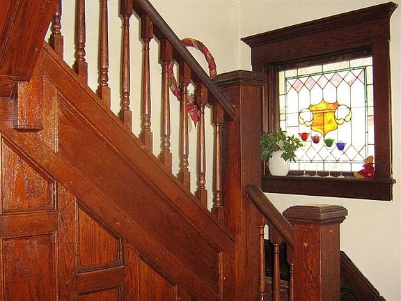Roomy home with four bedrooms upstairs, Living room, dining room, kitchen and nice entry way with open staircase. One room down is being used as a bedroom. Entry light belongs to the tenant. All appliances are tenants. Nice front porch. Hardwood floors.