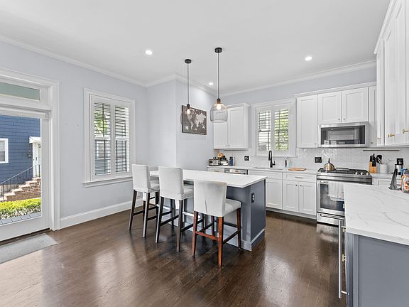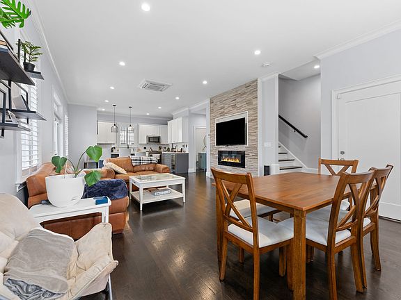 NO BROKER FEE - Recently renovated, this stunning Greek Revival townhome blends timeless architecture with modern luxury. The open-concept main level boasts soaring ceilings, abundant natural light, and newly refinished hardwood floors throughout. The chef's kitchen features sleek shaker cabinetry, quartz countertops, Jenn-Air appliances, and a built-in wine fridge perfect for effortless entertaining. Upstairs, the second-floor primary suite offers a serene private retreat complete with custom walk-in closets and a spa-inspired bath featuring a marble shower with custom glass enclosure, double vanity, and Kohler digital shower controls. The top floor includes two spacious bedrooms with custom closets and a stylish full bath. Enjoy year-round comfort with individually zoned mini-split heating and cooling in each room. Additional highlights include two deeded parking spaces, guest parking, and a shared backyard. Ideally located near popular neighborhood spots like McGonagle's, Lucy's, The Bowery Bar, and Yellow Door Taqueria. Just across the street, the newly renovated Garvey Park offers green space for pets, kids, and outdoor enjoyment. NO BROKER FEE. 1 year lease. Tenant pays gas and electric. First & security deposit only due at signing