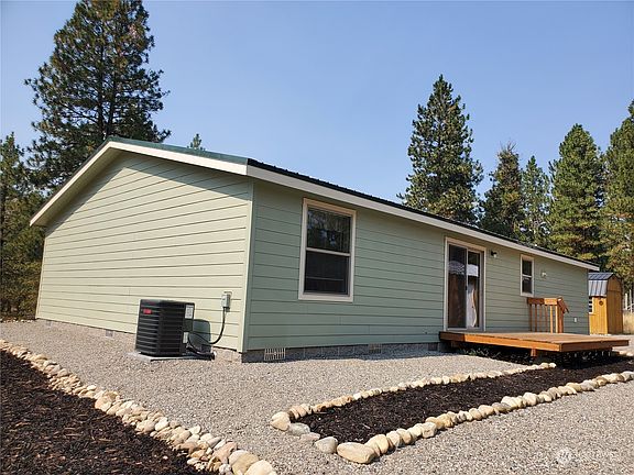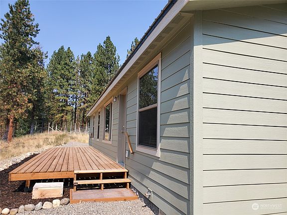 SELLER SAYS SELL! Must see this 'like-new' Winthrop Home. 1,508 sf, Built 2022. Designed for elevated view location on 1.93 Acres. 'Farm Kitchen', breakfast counter w/seating, new appliances, pantry, wood cabinets/storage. Spacious counters. Gracious floor plan invites gathering w/friends & guests. Beautiful Cedar wood decks. Sliding door off Kitchen/D.R. to deck. Views from every room. Easy care Vinyl-Plank flooring. Carpeted Bedrooms. Treed landscape beauty. Grounds meticulously maintained. 2 free-standing Outbuildings. Metal roof/Hickory 10x20 storage shed w/2 Lofts/workbench. Detached 1 Car Garage, 2 windows, man door, added snow load roof. Gravel driveway. Wi-Fi. Pool & athletic court. Quiet setting. Near schools & ski trails.