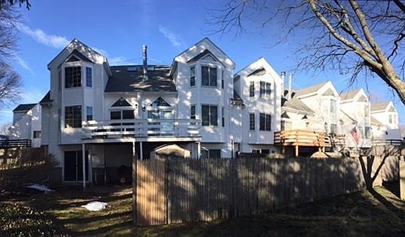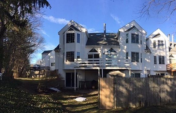Church Park Condominiums. Original owner. Features: End unit! Entry with 1st floor lavatory / Kitchen w/wood cabinets, bay dining area & pass through opening to Dining Room / Open floor plan with Dining Room with picture window / Living room with bay window / Rear foyer with cathedral atrium, stairs to 2nd floor, and slider to private deck / 2nd floor with 2 Bedrooms with walk-in closets and cathedral ceilings / Full bath with Master entrance / Lower level den with slider to porch / Laundry & Storage / Handy location / 24-unit condominium in Weymouth Heights!
