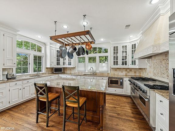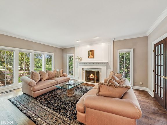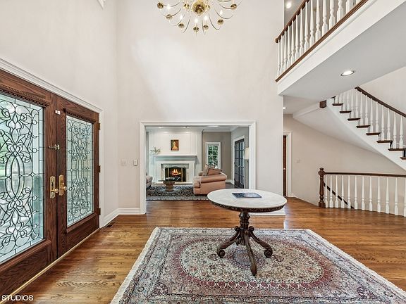 Step into luxury living at 23 Clarington Way, North Barrington, in the incredible Wynstone Neighborhood. This stunning residence offers an oasis of family entertainment with its exquisite features and grandeur. With 4/5 bedrooms, 5 full bathrooms, and a generous square footage of 6478, this home is a true masterpiece of elegance and sophistication. The interior is adorned with solid oak cherry-stain hardwood flooring, custom leaded beveled glass double entry doors, and a circular stair paint/stain combination leading to the lower level. The home is equipped with modern amenities, including a Nutone central vacuum, three gas forced air furnaces with programmable thermostats, and a stereo system for various areas of the home. You'll also find a gourmet De Giulio kitchen with white Rutt cabinets, granite countertops, a custom venetian plaster vent hood, and marble backsplash. Upstairs, the primary suite is a luxurious retreat, featuring custom louvered shutters, recessed lighting & skylight, white vanities, white corian counters, and a heated spa with marble surround. This home also boasts a three-tiered 15-seat home theater, complete with theater seating, suede & brass wall caps, beamed ceiling with keystone wood crowns. The entertainment options continue with an exercise room featuring walnut a hardwood dance floor., professional strobe lights and controls, a jukebox & speakers. There is also a sit-down bar with brass foot rail, custom grape-leaf moldings and corbels. The lower level features a fully finished English pub with a triple stainless commercial sink equipped bar. There is also a billiard room with chair and drink rail and Olfhauser billiard table, coffered ceiling with crown molding & wainscot. Step outside to enjoy the fenced in ground pool and heated jacuzzi, surrounded by a paver patio for outdoor relaxation and entertainment. Additional highlights of this extraordinary residence include DaVinci Faux Slate Roof, Anderson Windows, a front service entrance, and an alarm system. Don't miss the opportunity to experience the epitome of luxury living at 23 Clarington Way. This home is an architectural masterpiece that seamlessly blends elegance, entertainment, and comfort. Schedule your private tour today and immerse yourself in the grandeur of this remarkable estate.