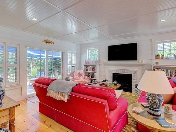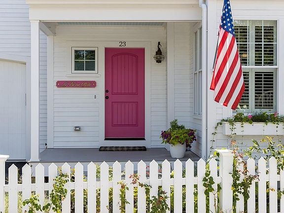 The moment you see the white picket fence and the pink door you know you'll be positively delighted with what's inside! Special features of this 3 bedroom 2 and one half bath "cottage" include bead board ceilings, random width pine floors, marble counter tops, the Milan Italy "Ildi" 5 burner dual fuel gas range with custom vent, pot filler faucet, center island, plantation shutters, ship lap walls, whitewashed brick gas fireplace, custom built-ins, built-in ironing board, and cozy window seat. First floor master suite, charming powder room and sliders to an outdoor deck with retractable awning and English garden paradise complete this charming home - it's like a page from a magazine!. Walking distance to Village Green, shops and amenities. You need to see this home!