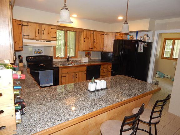 This home features a large master suite with cathedral ceilings & a 5 person hot tub. Another impressive feature is the ''stone room'' (see pictures), many updates throughout, large private yard, garage, circular driveway, storage shed, front & rear deck areas, new berber carpet, 1st floor laundry, 2.5 baths.