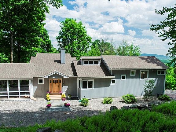 20 acres of land, surrounded by 127 acres of conservation land. On top of the world and simply stunning! Exceptional, multi-level, residence situated on a long private driveway, stone walls, spectacular views, & pastures near Northampton/Amherst on Horse Mountain. This energy efficient home provides custom craftsmanship, contemporary elegance, with designer maple floors/cabinetry, floor to ceiling windows, 16' ceiling. Venetian glass lighting accentuates the vaulted ceilings. Custom mill-work throughout. Luxurious and airy living room, kitchen with rare Brazilian granite and ss appliances. Spacious master suite with marble tile walk-in shower & soaking tub. Custom walk through closet with pocket doors, Green friendly marmoleum flooring, Avonite dual vanity counter top. Fantastic screened-in porch to enjoy and spend time in. Horse barn and riding ring with 100 bale hayloft, electricity, Nelson waters, extensive trails, acreage for horses to graze freely. Tax advantaged.