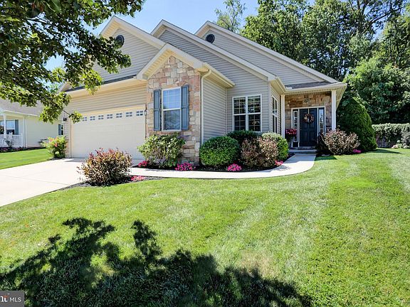 Looking to "downsize to one level" without sacrificing space or storage? This coveted Cambridge model in Shippensburg's 55+ Country Manor gated community fits the bill and is a rare find! This home is the largest model featuring 9' ceilings, open concept living, gas fireplace and sunroom that overlooks the private backyard and patio for enjoying the birds or outdoor entertaining. A welcoming open floor plan greets you at the door and you'll notice beautiful new carpet in the living area that is surrounded by care-free laminate floors. A stunning formal dining area is set back from the Living room and flanked with stately pillars, and a cozy breakfast nook is perfect for casual dining. The well-equipped kitchen features a large Island and plenty of counter space. The primary suite comes with a private bath featuring a large walk-in closet, two sink vanity, walk-in shower with seats and separate toilet room. There are two more bedrooms for guests or office/hobby rooms, another full bath, and storage abounds as almost every room and hall has its own closet. A convenient separate laundry room is on your way to the spacious two car garage which includes a bonus bump out for more storage or a workbench. This economical home has has natural gas forced hot air and central AC. The community offers a tastefully appointed club house featuring a large room for personal or community gatherings, full kitchen with island, cozy gas fireplace, community run activities and library, and a for an extra fee fitness room access. Other community amenities include security gates at all entrances, a screened-in gazebo overlooking the mountain and stocked fishpond with fountain, yard games and walking trails. This exclusive, quiet lifestyle comes with a monthly fee of $533 and includes sewer, trash, and recycling. Your full ownership of the home includes a 29-year renewable land lease for your lot. Pets are welcome and limited to two per household. Conveniently located to lots of shopping, restaurants, entertainment, golf, doctors and hospitals, and major highways. There's nothing left to do but move in and enjoy!