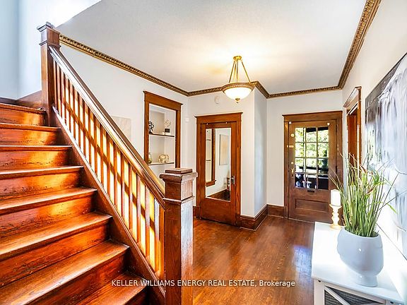 Welcome to this breathtaking Century home in the heart of Oshawa's desirable O'neil community. This remarkable residence showcases timeless craftsmanship, character & Charm, with over 3500sq ft of living space thoughtfully preserved.Fr the moment you arrive, the charm of this gem is undeniable. Original woodwork, soaring ceilings, high baseboards, detailed c/molding complement the gleaming h/wood flrs that flow t/out the expansive main level. The formal dining rm is truly impressive, designed for hosting with elegance featuring h/wood flring, integrated c/molding & the coffered ceilings transport you back in time, adding an unforgettable touch of character & charm.The formal living rm offer it's own refined space, ideal for entertaining highlighted by w/burning fireplace,h/wood flrs, high baseboards, c/ molding & an abundance of natural light .At the heart of the home is the o/s family room, highlighted by a beautiful rounded doorway leading to the b/yard oasis featuring a 12x24 pool, stamped concrete & deck, a perfect setting for summer gatherings.This inviting rm combines character with comfort, featuring interior picture window, h/wood flrs & cozy gas fireplace.The large kitchen provides ample cabinetry & generous space for gatherings, blending everyday function with the warmth of a family home.The 2nd flr features 4 generously sized bedrms & a full bath.One of these bedrms offers a private w/o balcony, perfect retreat to enjoy morning coffee, read a book or simply unwind, while the 3rd flr adds 2 more spacious bedrms & another full bathrm, perfect for family, guests or home office. The partly finished lower level offers versatility with 2 additional rooms, rec.rm, 3rd bathm & seperate entrance - Ideal for extended family, in-law suite or extra living space. Nestled on a quiet tree lined st in a mature neighborhood, this home offers easy access to all amenties. This home is truly a rare find for mulit-generational living or anyone who appreciates historic charm.